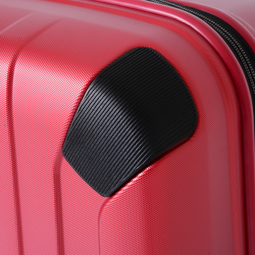 Handle caps, corner protectors, rubber studs, bumpers and other parts are attached to the suitcase using screws or can be just pressed into position.