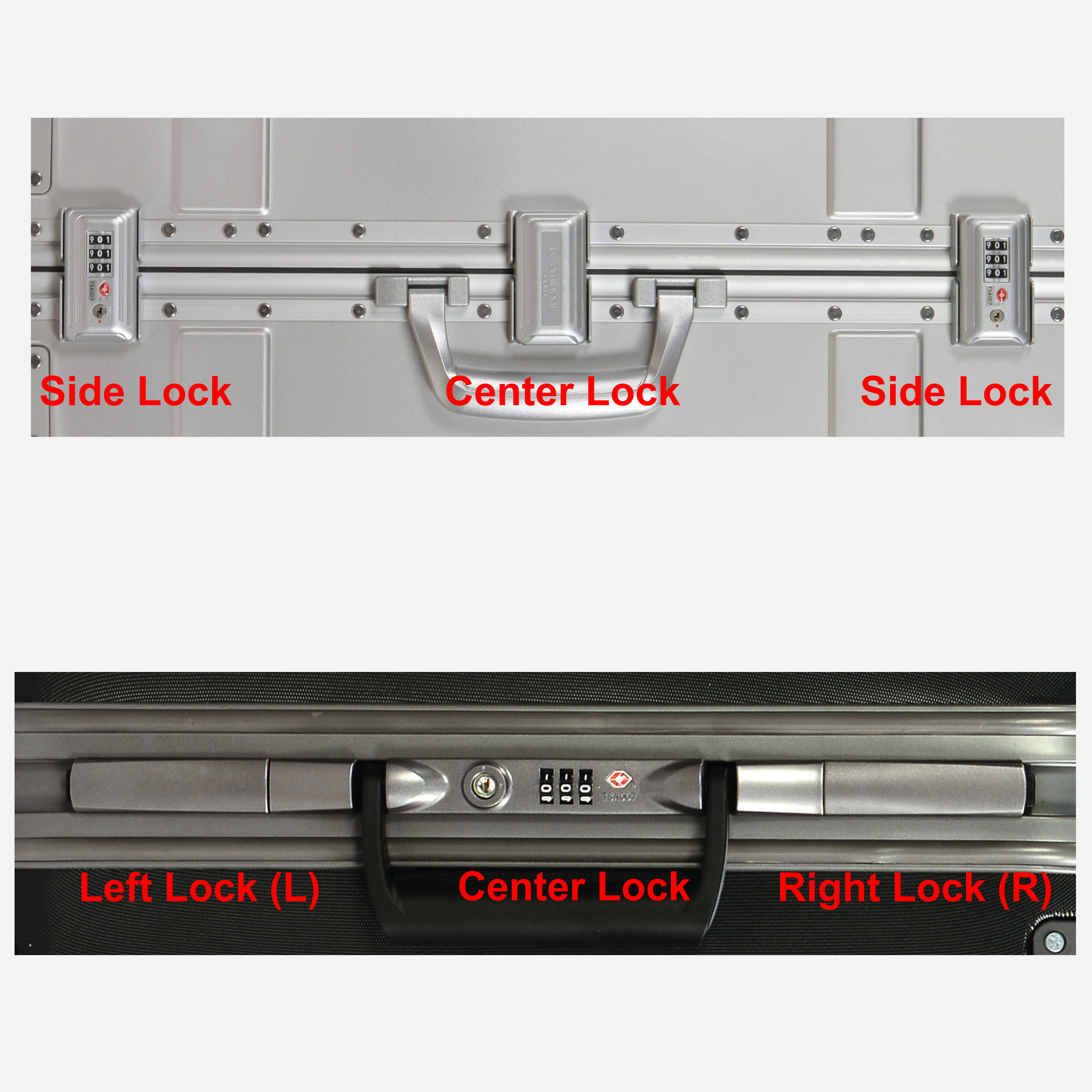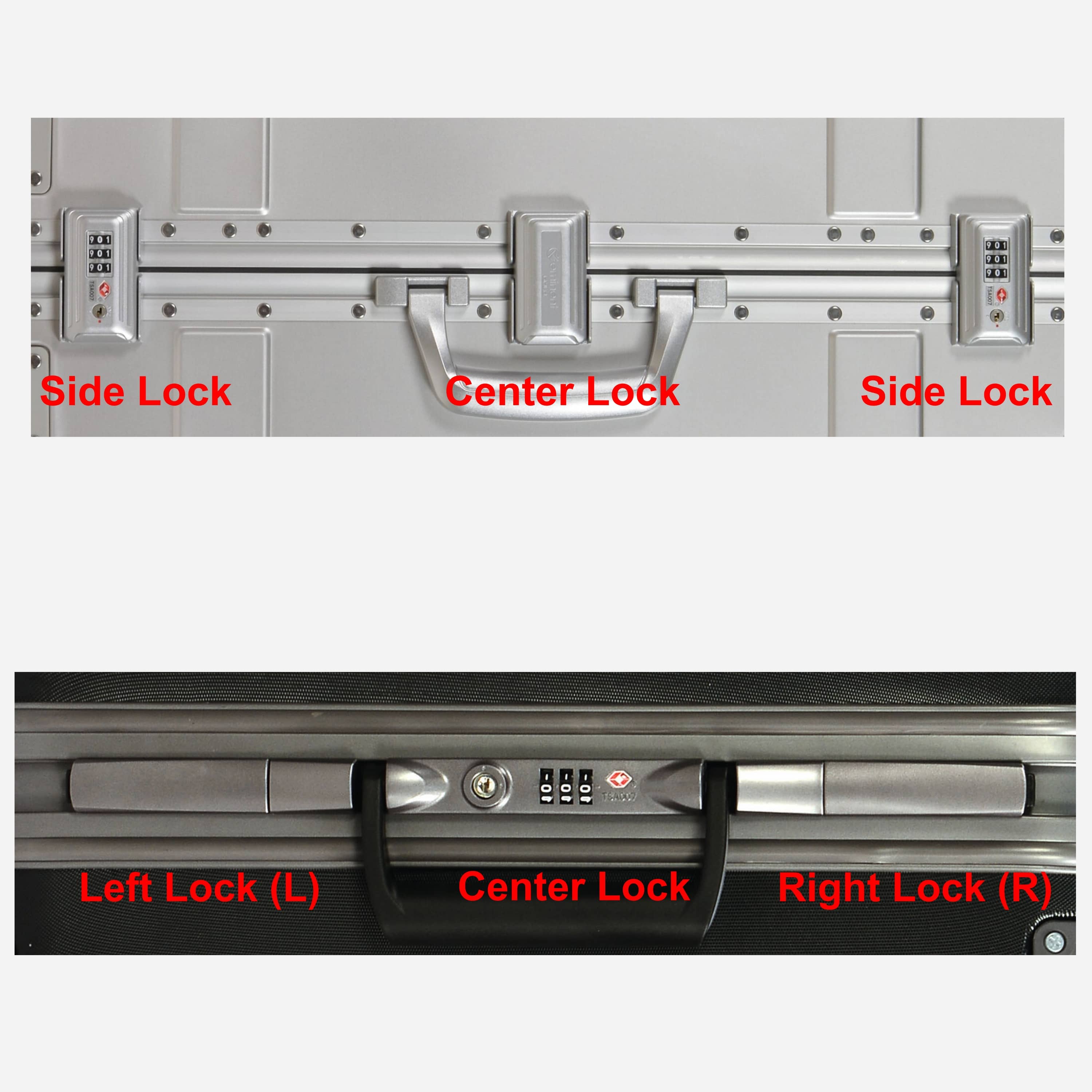 As it can be seen from the image the side locks may be identical or have a different orientation depending on the suitcase model.