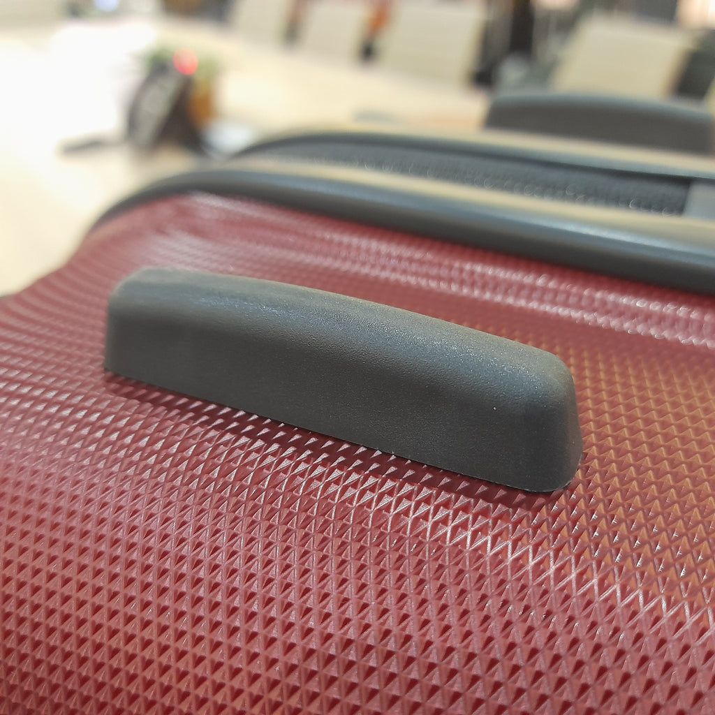 Handle caps, corner protectors, rubber studs, bumpers and other parts are attached to the suitcase using screws or can be just pressed into position.